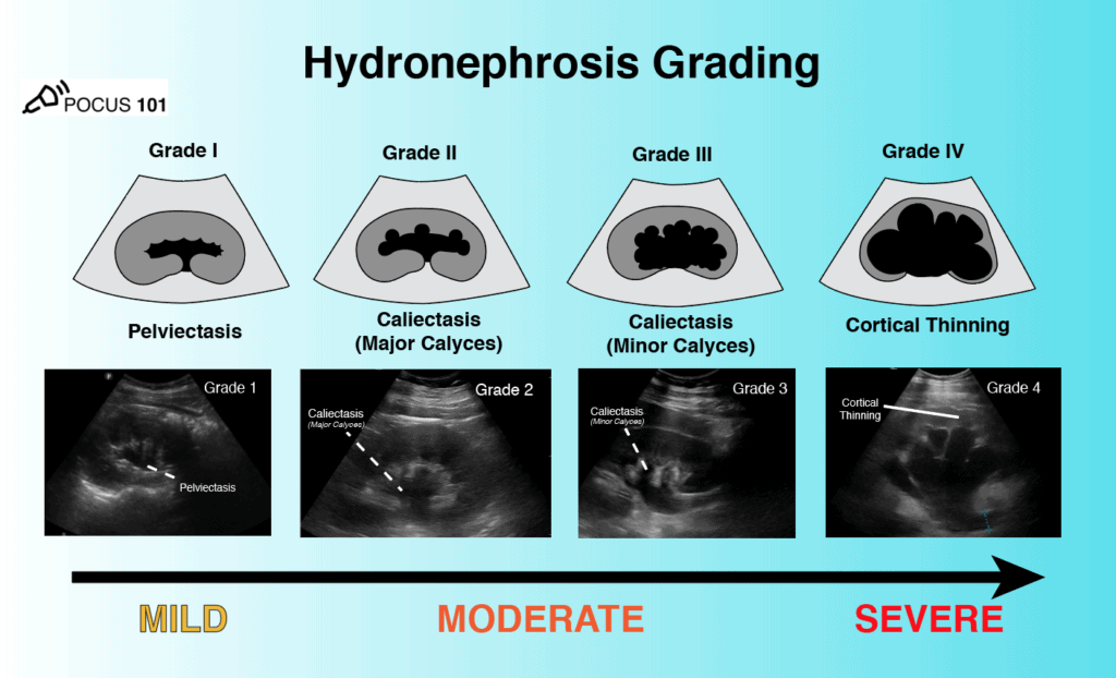 - Ultrasound Scan: Hydronephrosis is diagnosed using an ultrasound scan. It helps to determine the severity of blockage; reflected by the amount of dilatation.